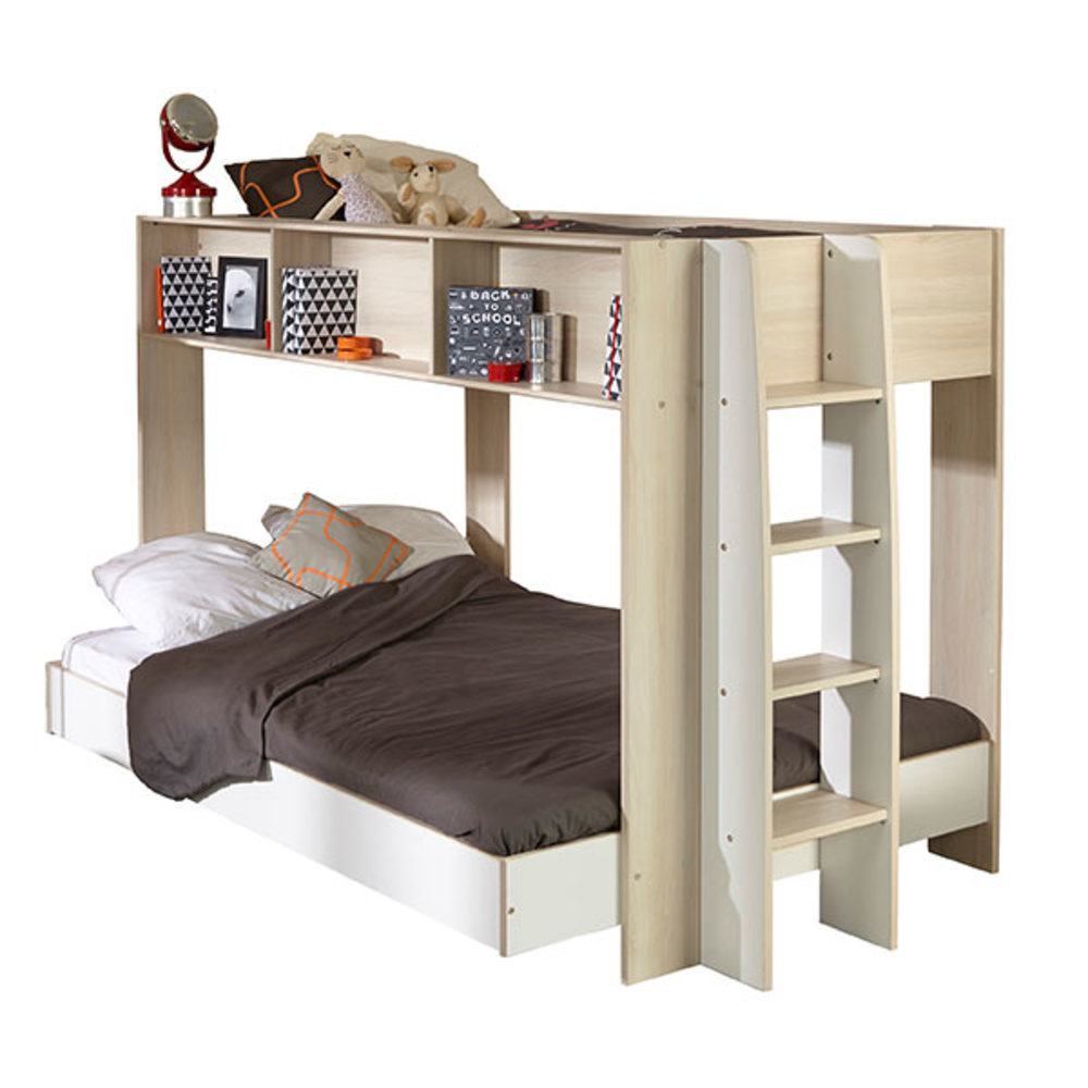 basika vous propose le produit lit superpose team de couleur acacia clair/blanc avec les dimensions l 228 x h 139 x p 145.